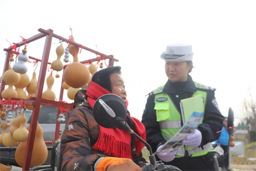 民警利用群众赶集购物的有利时机,通过发放宣传资料、现场咨询答疑通过发放宣传资料、现场讲解等形式,向群众普及交通安全知识。耐心细致向群众讲解冬季恶劣天气出行注意的事项,重点剖析农村常见的骑乘摩托车不戴安全头盔、驾乘汽车不系安全带、农用车违法载人载货、酒后驾驶等交通违法行为的危害;同时,结合典型事故案例,用通俗易懂的方言详细讲解其严重危害,重点提醒老年人、农用车驾驶人等群体注意冬季出行安全。