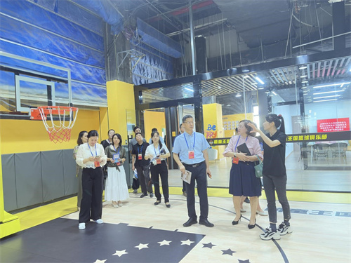 图为人大代表深入广西萌童王国篮球俱乐部金湖校区调研 康晓红摄