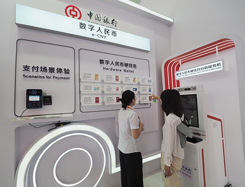 北京首钢园2025年服贸会金融服务展区,观众在中国银行展位参观数字人民币硬钱包 作者:杜建坡/来源:中经视觉