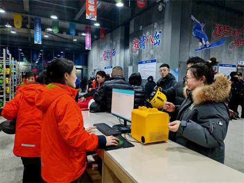 “我们提供雪服和雪板的租赁服务,也有教练团队,都是有资质的。今年园区还进行了整体的服务优化升级,设置了多处卫生间以及超市和美食区域,希望可以给游客们带来更舒适的游玩体验。”八岔沟滑雪度假小镇雪具大厅经理刘艳介绍说。