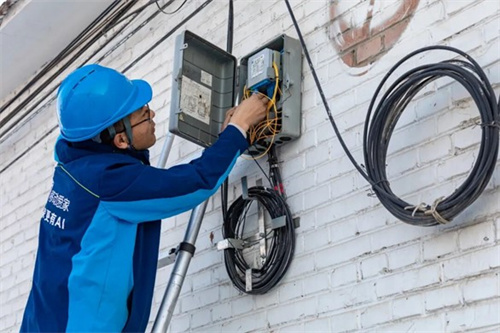 而在王桥镇洛江沟村,飞线上墙的改造工作也在有条不紊推进中。通信公司的工作人员熟练地盘纤、布线、接网,将原本纵横交错的“空中蜘蛛网”逐一规整,再通过墙体预设的PVC保护管穿墙入户,稳稳接入村民家中的光猫接口。