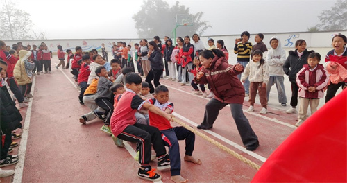邦别村小学校举行冬季趣味运动会。摄/段杰