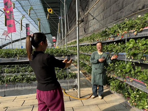 好产品更需好销路。公司创新营销思路,搭建“全员抖音宣传矩阵”,鼓励员工以个人账号分享草莓生长、日常管护、采摘体验等鲜活场景。“我是看抖音直播过来的,这里的草莓清甜可口,孕妇吃着也放心。” 前来采摘的市民陈先生赞不绝口。线上流量的集聚,有效带动了线下销量与采摘热度。
