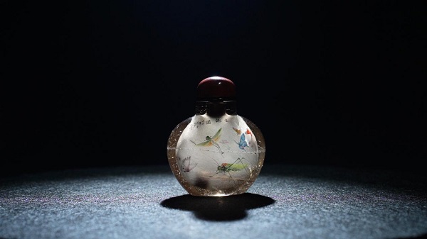 内画艺术诞生于清代鼻烟壶文化,其独特之处在于“反向作画”。画笔从壶口探入,在有限空间中进行精细描绘。由于器物内部曲面复杂,绘画时既无法直接观察笔锋落点,又需要保证线条准确流畅,因此对创作者的手眼配合与艺术修养提出了极高要求。