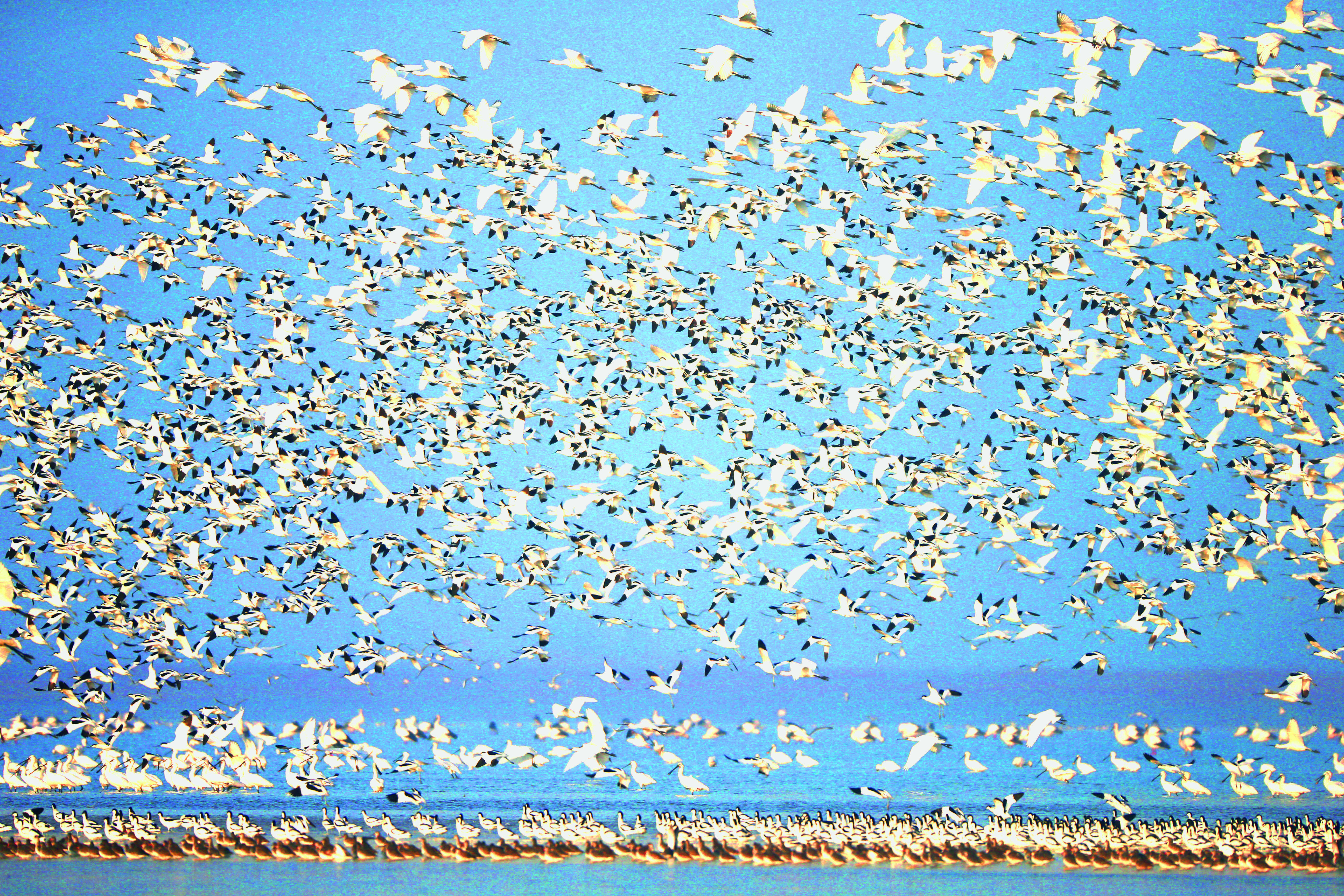 鄱阳湖上,候鸟遮天蔽日。王小龙摄。