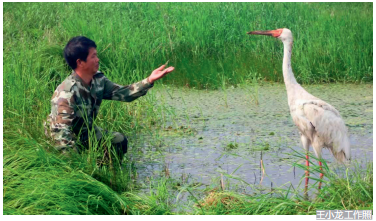 王小龙是土生土长的吴城镇人,30多年来一直与鸟为伴,被人亲切地称为“候鸟守护神”。作为鄱阳湖自然保护区吴城保护站副站长,王小龙是候鸟的亲人,也是名副其实的“鄱湖卫士”,多年来获奖无数,但却对家人亏欠颇多。在接受《经济》杂志、经济网记者采访时,王小龙表示,家人2000年就搬到南昌居住,而自己则很少回家,即使逢年过节也一直守在鄱阳湖。“从青年到老年,我大半辈子都献给了鄱阳湖。鄱阳湖是我的家,我从小就钟爱候鸟,保护候鸟与家园是我义不容辞的责任。还剩4年就退休了,退休后计划还是留在鄱阳湖。”据王小龙介绍,在各级政府和广大护鸟、爱鸟人士的呵护下,鄱阳湖地区的候鸟种类与数量在不断增长。“1983年鄱阳湖护鸟保护区成立的时候,只有150种候鸟,而今整个鄱阳湖地区候鸟种类已攀升至420种,候鸟保护区内有380种。”