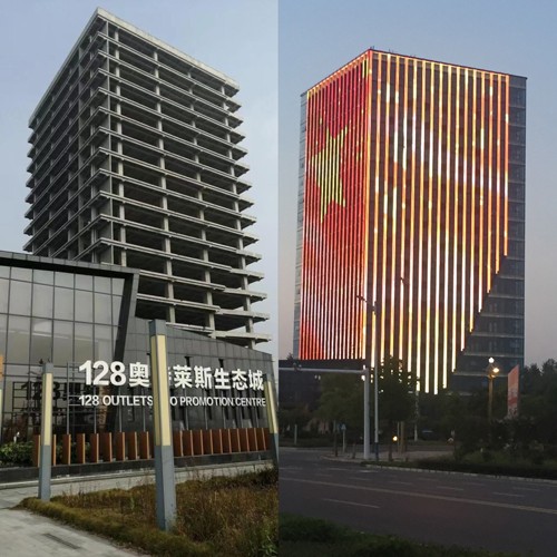 “128 奥特莱斯”地标建筑烂尾时与重建后形成鲜明对比