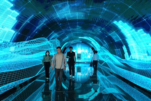 观众在 2022 全球数字经济大会拉萨峰会上参观。来源:新华社
