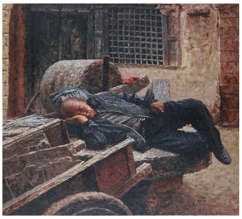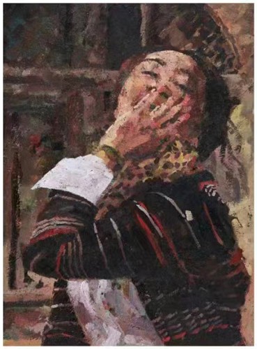 王建顺一直在探索创新画法,他把国画技法精髓揉合于油画之中,即使是在《家》系列中一些比较重要的作品,他也惯常于把大色块铺陈作为作品的底色和背景,这不仅增强了作品中人物与人物、人物与景物的透视关系,更使画中人物形象更真实更丰满。