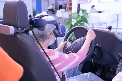 2022 年服贸会上,一位老年观众体验 VR 智慧驾培 翟晓汀 / 摄