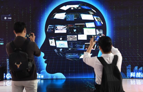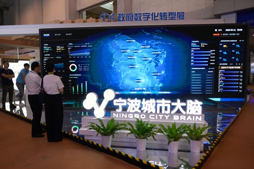 观众在智慧城市馆内宁波城市大脑展区参观。来源:新华社