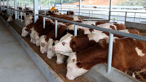 宽敞明亮的现代化养殖大棚内,风扇急速转动,温度凉爽宜人,数百头肩宽体胖的肉牛整齐划一,探出头来在饲料槽中品尝“美食”,吃得津津有味。这是江西省九江市武宁牧场的日常一幕,据九江国控旗下一级子集团公司“九派城乡发展集团有限公司”(以下简称九派城乡)创新技术组负责人余南才介绍,今年以来,该牧场利用中药材加益生菌发酵制作有机饲料,对30头肉牛展开饲料营养实验,这些实验肉牛皮毛锃亮、身体壮硕、消化充分、增重又快,效果良好。