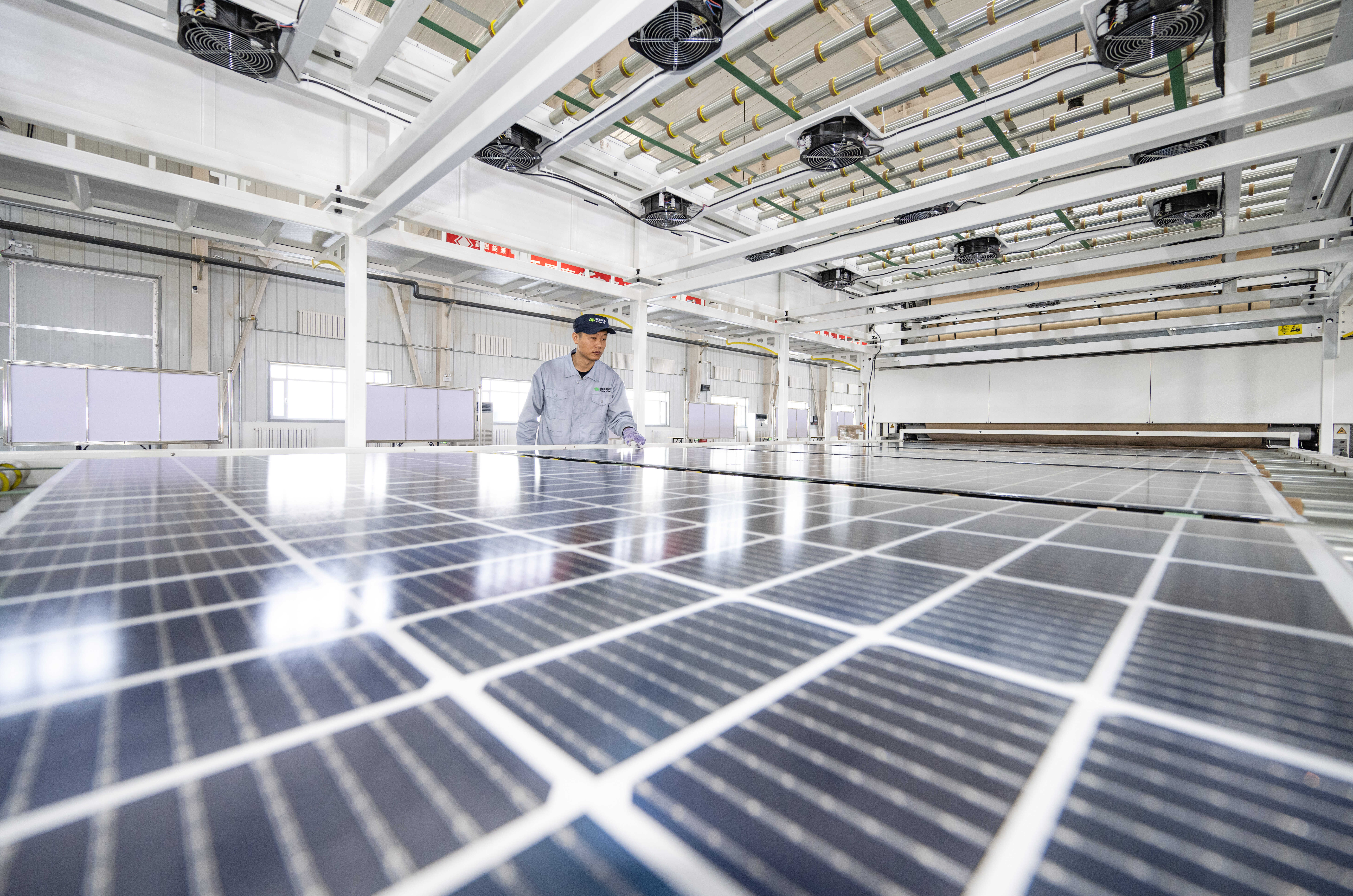 工作人员在生产光伏组件。来源:中经视觉