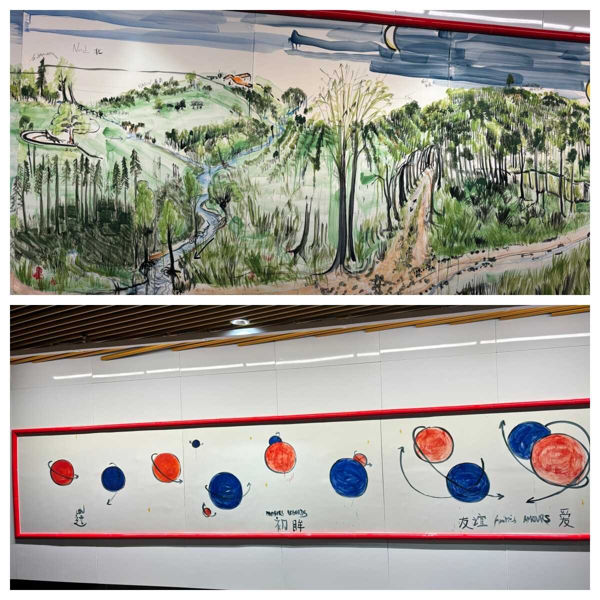 艺术是连接不同文化、促进交流与理解的重要桥梁。为庆祝中法建交60周年,法国艺术家法布里斯·伊贝尔为上海量身定制两件艺术装置,并最终在上海陆家嘴地铁站内展示,在美美与共中升华中法友情。该装置由两块陶瓷壁画组成,分别以“城市·森林”和“友谊”为主题。法布里斯表示,“城市·森林”作品描述的是家乡法国山谷间的故事,而“城市·森林”作品表达的既可以是两个国家间的友谊,也可以是两个人的友谊,从互不相识到慢慢地靠近和熟识,从而产生一种特别的友情。