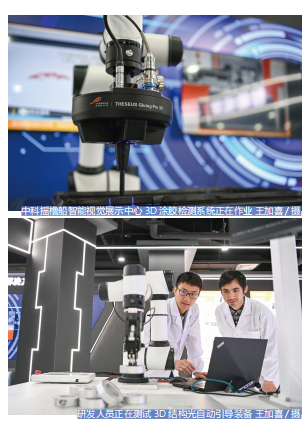 鑫景特玻只是两江新区新兴产业发展的一个缩影,近年来,该区正在加速人工智能、新材料、生物医药、装备制造等战略性新兴产业布局,不断开拓发展新空间,全力做强经济“增量”。在两江新区协同创新区,当记者走进明月湖畔的重庆中科摇橹船信息科技有限公司的智能视觉展示中心,看到3D涂胶质量在线检测系统、Micro-LED晶圆外观检测系统、曲面高反光表面3D缺陷检测系统等多款国内首台/套智能视觉装备在此一一陈列。作为中科院西安光机所、两江新区“院地孵化”的第一家硬科技人工智能企业,摇橹船公司也是我国唯一一家能够完整掌握“3D+4D光场+球积分计算光源+超高分辨率大靶面镜头”关键技术的智能视觉企业,其凭借“光学”领域技术优势,成立短短4年时间,便成为明月湖畔首个国家级专精特新“小巨人”企业。据摇橹船公司首席科学家王建力介绍,该公司在结构光相机技术上取得了重大突破,其拍摄速度极快,能形成独特的三维立体图像,在识别、定位、引导和检测方面展现出巨大优势。“基于智能视觉精准识别和定位技术,我们可以通过相机拍摄物体形成坐标,然后传输给机械臂,使其能够自由抓取杂乱零件并放置到指定位置,这样的机械臂引导系统为自动化生产提供了新的解决方案。”除此之外,王建力还表示,公司研发出的MicroLED晶圆检测设备,可以对数百万颗放在几英寸大小晶圆上、比头发丝还细的LED芯片进行全方位“体检”,漏检率小于0.01%,这帮助显示面板企业解决了巨量芯片精准转移难、坏点检测难这两大导致难以大规模商用的“痛点”,目前,该技术和设备已经应用在京东方的生产线上。