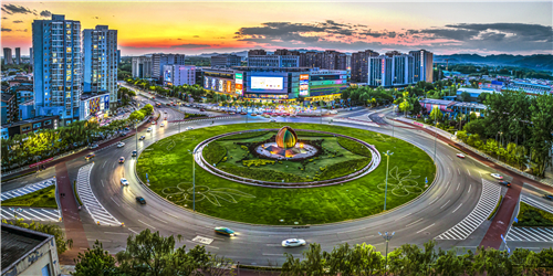 迎宾环岛的黄昏 图/平谷区委宣传部提供