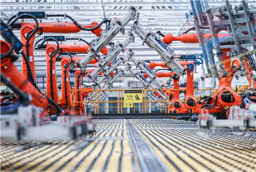 位于河北省石家庄市行唐县工业园区的石家庄玉晶玻璃有限公司生产车间,工业机器人进行玻璃自动分类搬运作业。作者:张晓峰/来源:中经视觉