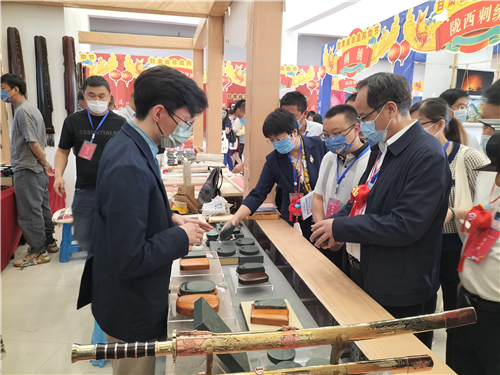 卢广成在甘肃省第二届“黄炎培杯”中华职业教育非遗 创新大赛暨非遗职业教育成果展示会展示洮砚作品。摄/卢广成