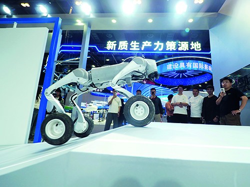 北京国家会议中心,观众在第 27 届北京科博会上参观“四足机器人爬坡” 作者:杜建坡 / 来源:中经视觉