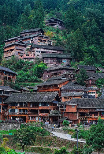 郎德古寨晨雾中的吊脚楼 作者:肖芳