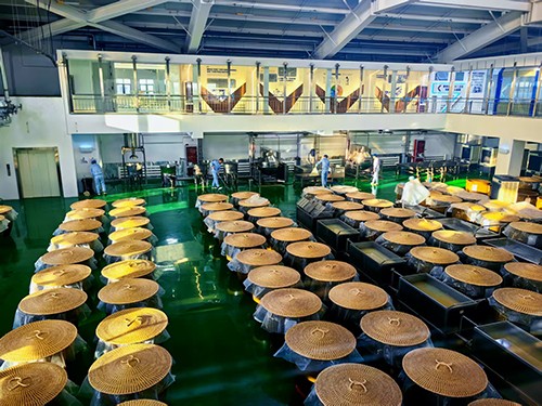 目前,雁门王酒业坚持机械化与手工酿造“两条腿”走路。在产业园深处,30余名工人恪守古法,延续着手工酿造的匠心传承。手工作业区内,老师傅们正有序操作,金黄黍米经浸泡后,被送入蒸锅转化为香气四溢的“酒饭”。随后,再被放入摊凉车中均匀翻动,冷却至适宜温度。关键的下曲环节,老师傅将块曲研磨后依古法均匀拌入,其力度与手法全凭多年经验。拌曲完成的原料被送入陶缸进行发酵。吴寰介绍,此过程周期灵活,短则两个月,长可逾三个月,完全依赖酿酒师傅的精准判断——通过观察酒醅、细闻香气、感知温度,决定封缸的时机等,这种“望、闻、问、切”的技艺,是代州黄酒非遗精髓所在,也是标准化生产中难以量化的“灵魂”。在这里,传统技艺的“温度”与标准化管理的“精度”相互交融,共同守护着代州黄酒的千年风味。