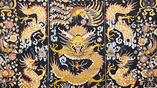 保亭向中国国家版本馆捐赠的手工黎锦龙被(三联幅) 中共保亭黎族苗族自治县委宣传部供图