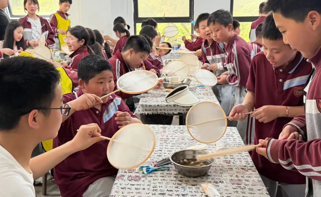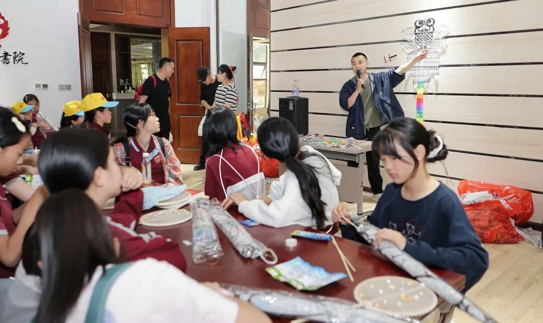 午餐过后,最令人期待的手工体验环节正式开始!本次研学精心准备了蚕丝扇制作、小风筝DIY、桑叶面制作三大趣味课程,让同学们在动手实践中,近距离感受传统技艺的精妙。