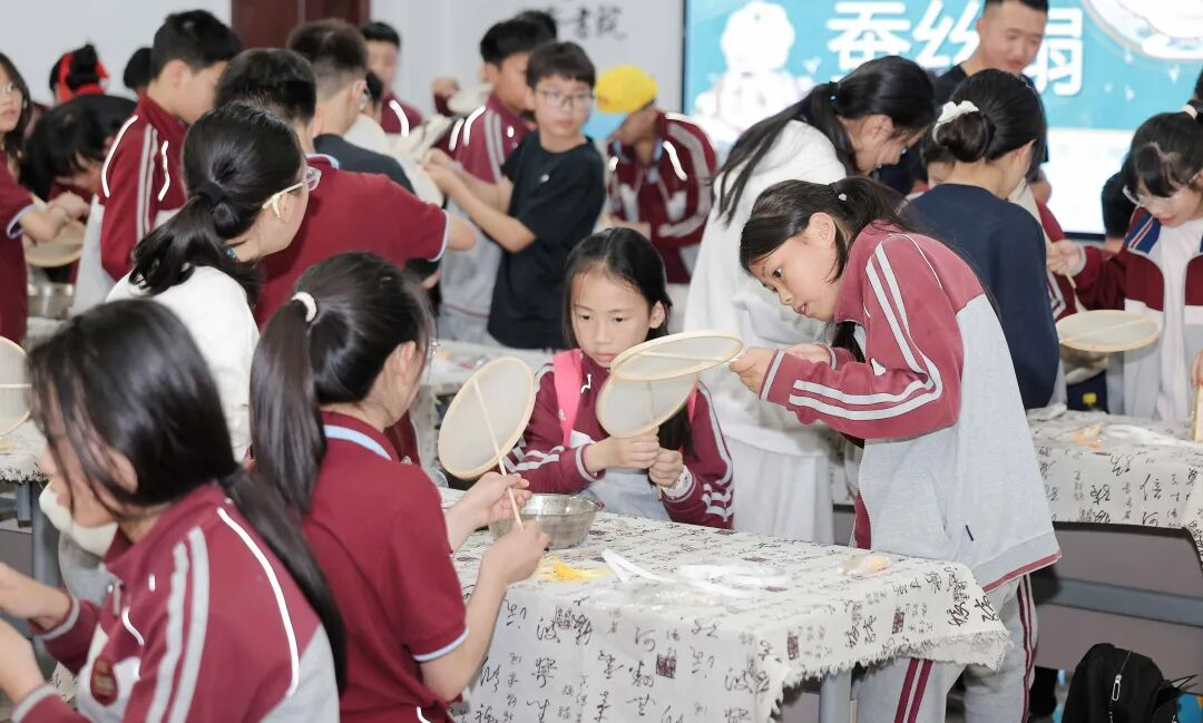 在桑学堂内,桑叶的清香与面粉的麦香交织。同学们亲手擀、切、揉、捏,体验传统面食的制作乐趣。当翠绿筋道的桑叶面出锅,大家品尝着自己的劳动成果,脸上满是满足,在舌尖上感受着嫘祖文化与自然馈赠的完美融合。