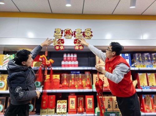 “客户经理建议我设置一个‘年货大街’主题区,把红色包装的商品、喜庆的礼盒集中展示,再配上些小灯笼、中国结,氛围一下子就上来了。”在甜蜜篮子百货超市店内,店主付维珍正在客户经理刘建武的指导下调整商品陈列。