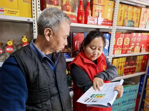 (客户经理王娟正在为零售户讲解《春节安全经营指南》)