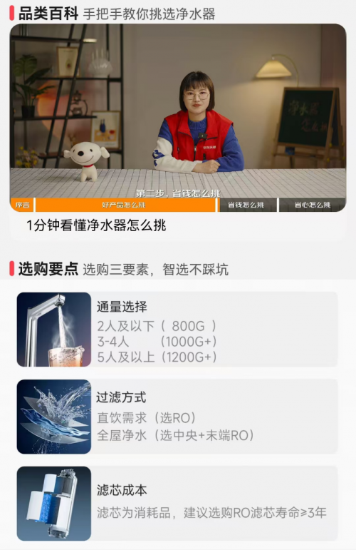 近日,中国消费者报的一则报道引起大众广泛关注。报道揭露,一些不法分子通过设置套路诱骗老年人以高昂价格购买成本低廉的普通净水器,严重侵犯消费者的权益。如今人们越来越关心饮用水健康,如何以合适的价格入手一台安全、优质的净水器是很多消费者的困扰。为助力消费者进一步了解净水器的挑选标准,京东家电家居采销贴心地进行了视频科普,从多方面入手帮助消费者解决选择难题。打开京东APP搜索“净水器”即可进入活动页面观看采销讲解视频,还能根据推荐选购优质净水机,购物权益也有保障。