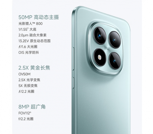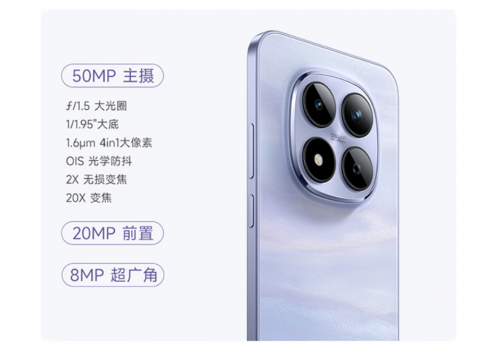 REDMI Note 15 Pro+后置5000万像素高动态主摄、2.5X黄金长焦、800万像素超广角;主摄采用光影猎人800高动态传感器,配置1/1.55英寸定制大底、f/1.6大光圈;支持2.5X黄金焦段,拍人、拍景都无忧。REDMI Note 15 Pro+不仅搭载小米龙晶玻璃,还搭载超韧玻纤背板,无惧跌落。REDMI Note 15 Pro+采用全等深微曲屏,视觉空间更开放。