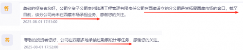 据公开信息显示,勘设股份在西藏多地承接过勘察设计等任务,其全资子公司贵州陆通工程管理有限责任公司在西藏设立的分公司,是其拓展西藏市场的窗口。