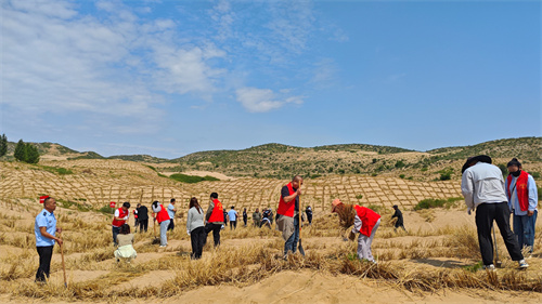 党建+植树造林打造绿色发展“先锋队”。针对科尔沁沙地综合治理、“三北”等重点工程,组织成立“造林攻坚党小组”,由局长牵头带领党员干部对接项目资金、技术指导和进度监督。在赤峰市西北部科尔沁沙地综合治理和林草湿荒一体化保护修复项目中,由县林草局党组成员带队,组成6个小分队深入五十家子、新林镇灌木林平茬和人工造林等项目地,全过程监督指导1.78万亩人工造林、2600亩的工程固沙等项目实施,既保障工程建设进度,又能保证工程质量。同时,开展了“同心植沙障,聚力护绿洲”“我为三北种棵树”等志愿服务活动6次,联合检察院、共青团、应急管理局、红十字会、南门外、富林及大冷山林场等十余家单位300余名党员和群众志愿者,到南门外林场0.26万亩科尔沁沙地工程固沙项目地块及福山生态旅游区去等地开展植树造林栽植沙障活动。