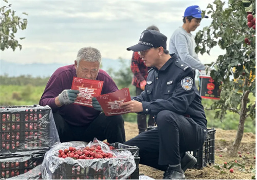 金秋十月,绛县10万亩山楂迎来丰收季,红彤彤的山楂果缀满枝头,果农们穿梭其间采摘忙碌,外地客商的货车排成长龙,一派热闹景象。在这片“山楂红”映照的丰收画卷中,绛县公安局禁毒大队与反诈中心民辅警组成联合宣传队,深入山楂种植基地及交易市场,开展“禁毒+反诈”双主题宣传活动,将法治知识送到田间地头,为果农、客商和务工人员筑牢安全防线。