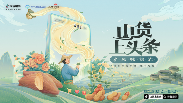 在龙岩市人民政府的指导下,抖音电商将投入百万级货品补贴和专项助农扶持,帮助当地1200余个中小农货商家拓展消费市场,让多种龙岩特色农产品走向全国消费者。本次线上专区为期7天,至3月27日结束。