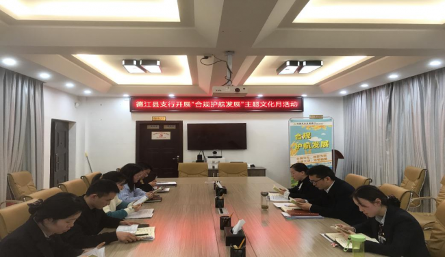 近日,为弘扬农发行“合规为先、风控为要,全面主动、审慎稳健”风险合规文化理念、推进业务高质量发展,农发行德江县支行积极开展了“合规护航发展”主题文化月活动,