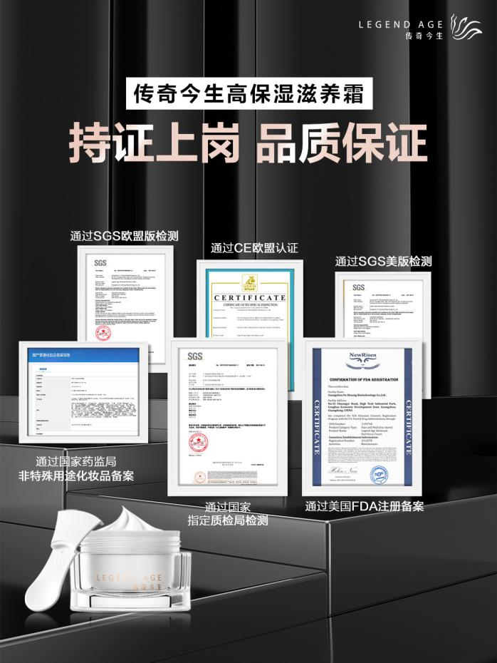 我们的产品通过了国内外各项权威检测,中国国家药监局化妆品备案、中国国家指定质检局全检、SGS美版检测、SGS欧盟版检测、美国FDA注册备案、CE欧盟认证……