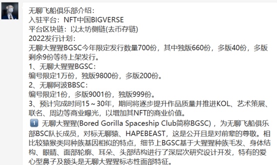 而接下来为大家介绍的就是国内目前爆火的“无聊大猩猩BGSC ” NFT作品,以下为其部分作品图: