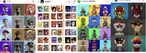 (图中的每一个头像都算作一幅NFT作品,这与“无聊大猩猩BGSC ”相比是不是显得过于轻浮了)