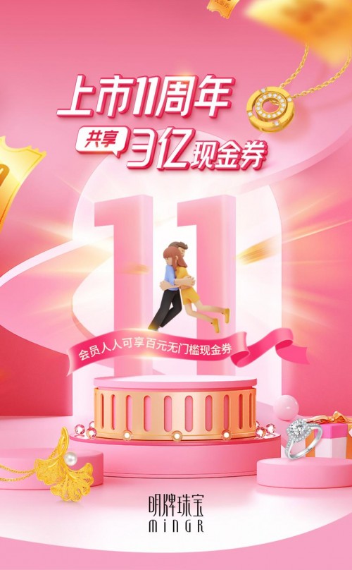 为感恩会员及粉丝的暖心陪伴,明牌珠宝在上市十一周年庆活动期间(4月15日—5月5日)将针对全国会员重磅发放3亿现金券、镶嵌满减券、积分兑换好礼,针对银泰会员发放数量转化券、惊喜到柜礼……还有爆款产品限时特价、会员回馈等诸多福利活动回馈会员。更多精彩好玩的活动可以关注明牌珠宝官方公众号、官方微博、小红书等官方媒体查看参与,目前明牌珠宝线上各大电商平台店铺周年庆活动也正在火爆进行中。