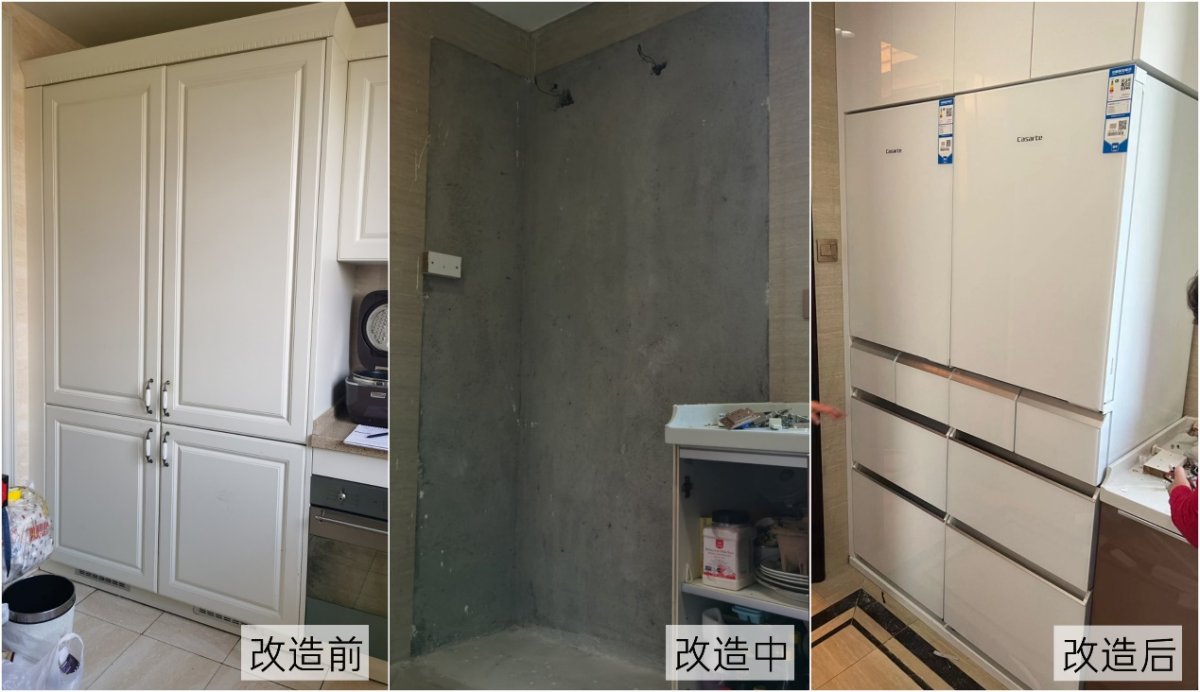 精装房交房后,配的冰箱不满意怎么办?遇到这种事儿时,很多用户可能都会选择继续“凑合用”,因为换冰箱实在太麻烦。空间已经预留好了,再换冰箱改来改去太费事儿。不过,上海的刘女士却找到了一个更好的方案,不但冰箱嵌入效果更美观,容量比原来也多出不少,关键是局改也不用自己费心。
