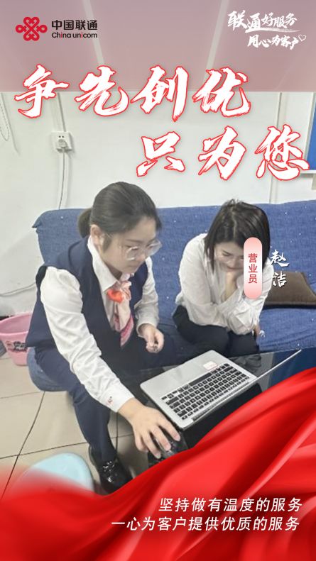 赵洁是河南郑州联通的一名营业员,已坚守服务一线5年时间,工作中她始终秉承着“首问负责,用心服务”的宗旨,致力于为用户提供温暖的服务。