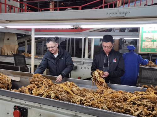 进出口公司工作人员在复烤厂备货加工。进出口公司供图