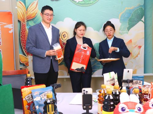 志愿者图为开展直播带货当地农特产品,拓展商品销路