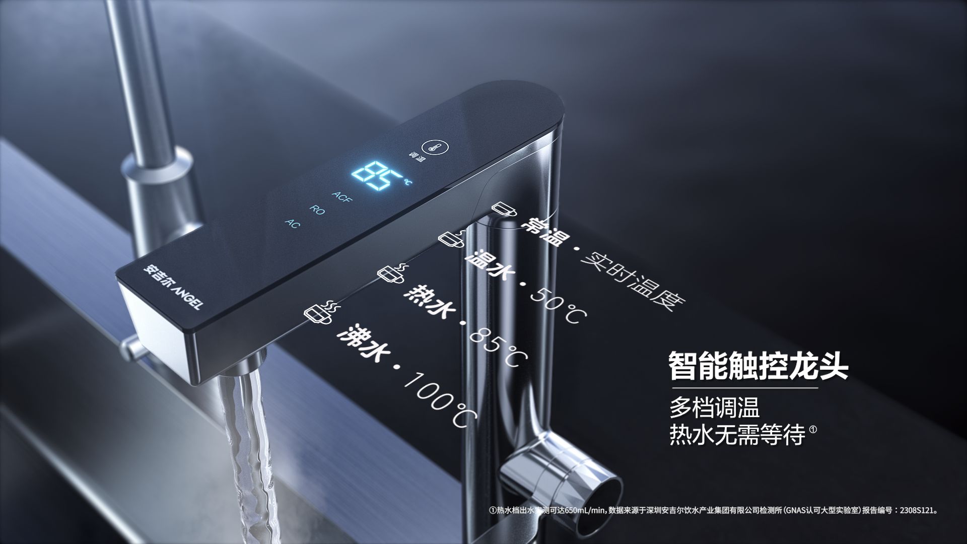 这款产品搭载了大流量专利鲜热技术,实现即滤即热即饮,配合智能触控龙头设置四档水温,满足常温水直饮、50℃泡奶、85℃泡茶、100℃泡咖啡等多场景需求。更多产品,欢迎前往安吉尔门店体验。