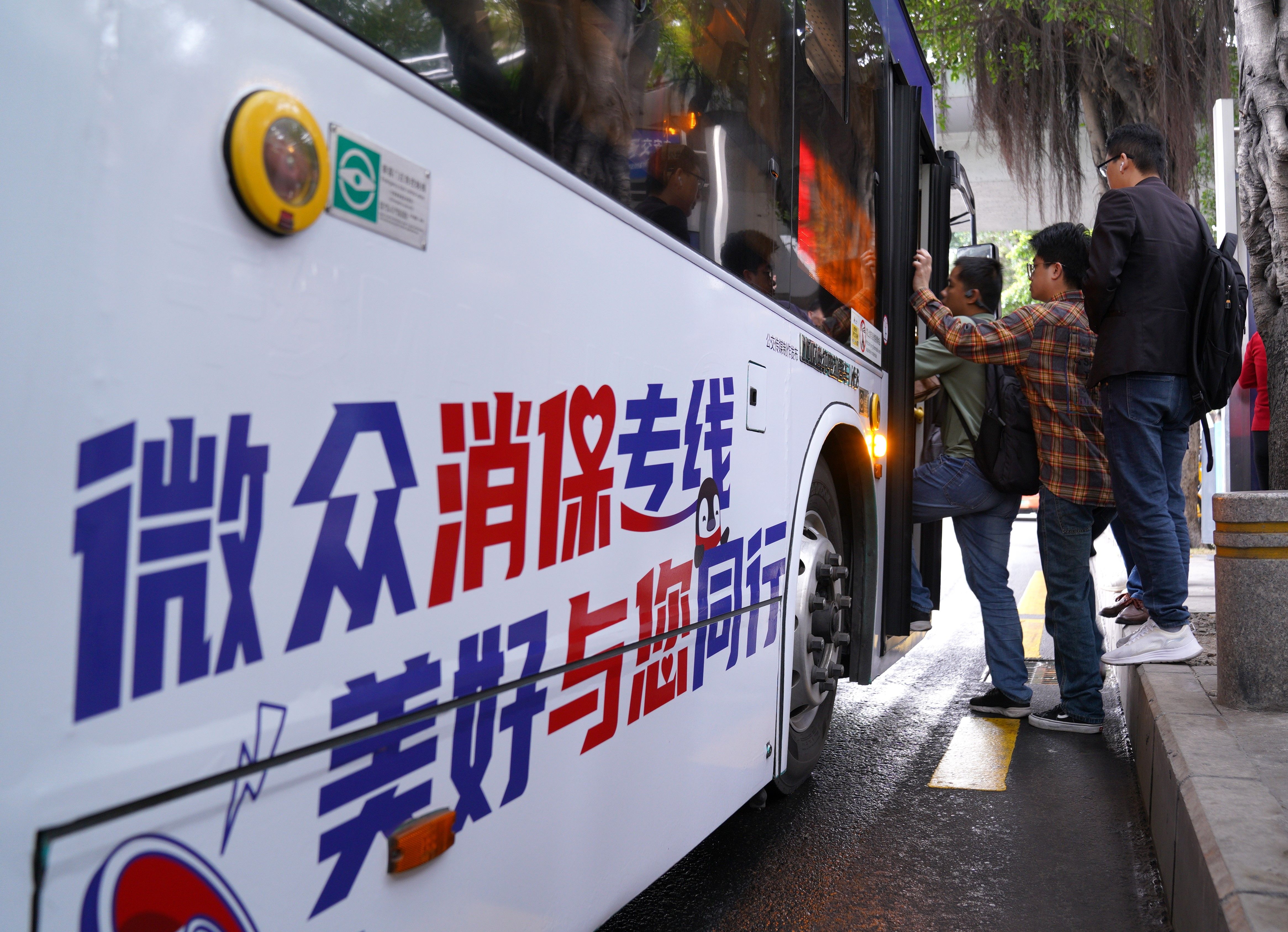 (“微众消保专线”主题公交车)
