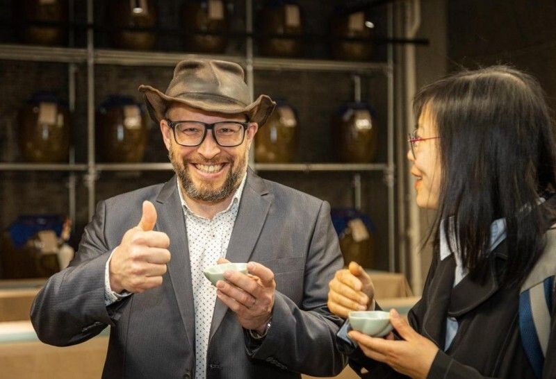 此次,加拿大驻重庆领事馆一行携Diony Distillery威士忌酒庄创始人,前往江记酒庄进行了深度的交流与体验。他们重点参观了江记酒庄的手工精酿车间,深入了解地下陶坛酒库,领略了江记酒庄独特的酿酒工艺与酒文化,品尝过江记酒庄的原浆酒与陈年高粱酒后,考察团成员纷纷表示其口感独特,余味悠长。