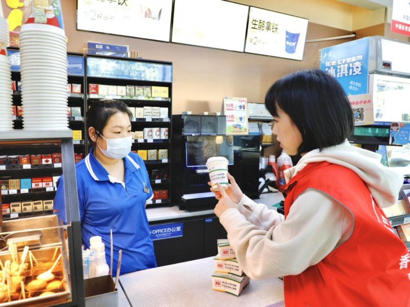 聚焦大型超市、连锁便利店等生活区域、校园周边售烟行为,该局组织“香溢”志愿者向“十足”“之上”等便利店发放“护苗”热饮杯套,在零售店张贴“禁止向未成年人售烟”提示标识,借助流动宣传方式,为广大师生构筑一个安全、有序、整洁的校园周边环境,让保护未成年人的意识在生活中广泛传开。