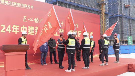 启动仪式上,现场领导为参建单位建设者代表授予“党员先锋号”“工人先锋号”“青年文明号”“青年突击队”旗帜。